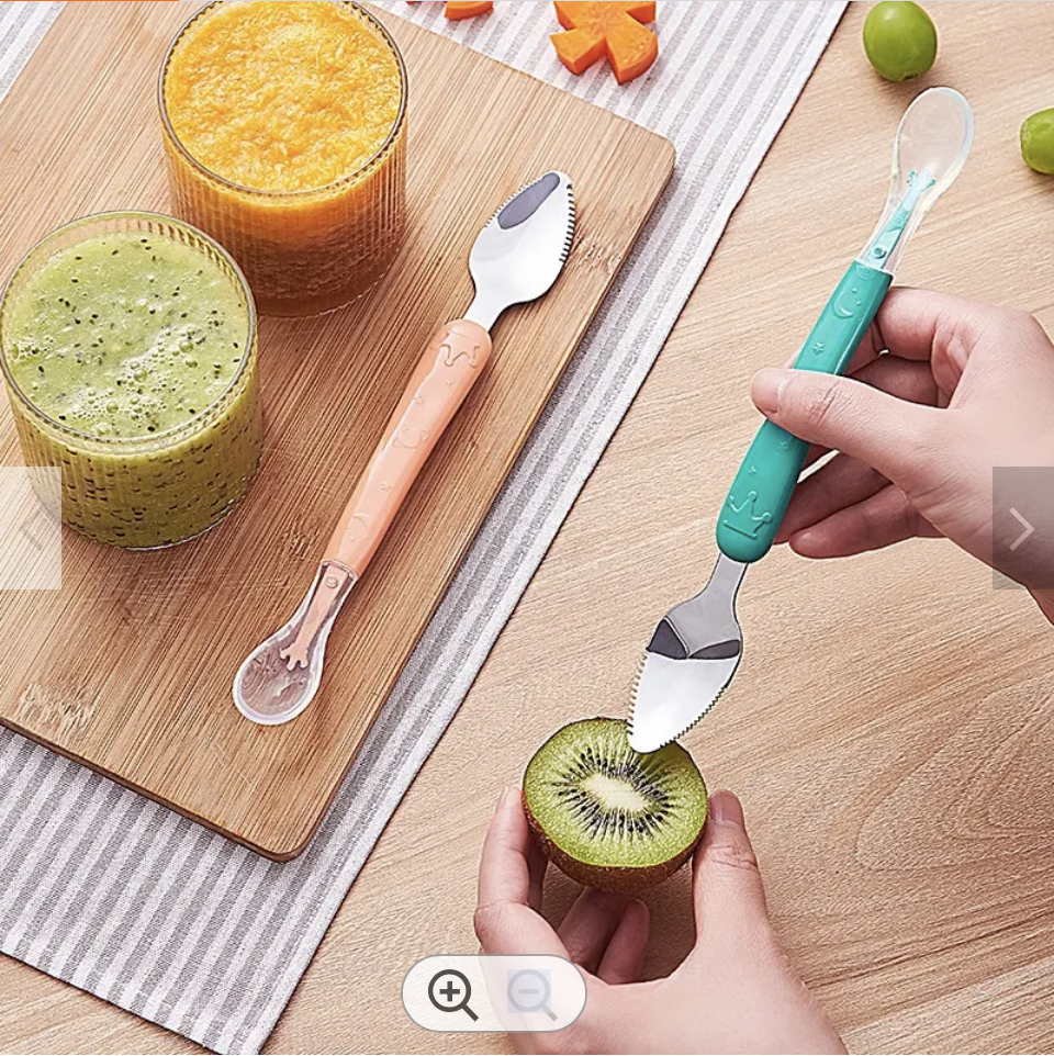 Faites la purée de fruits facile à manger pour votre BéBé grâce à la “CUILLÈRE 2 en 1“.